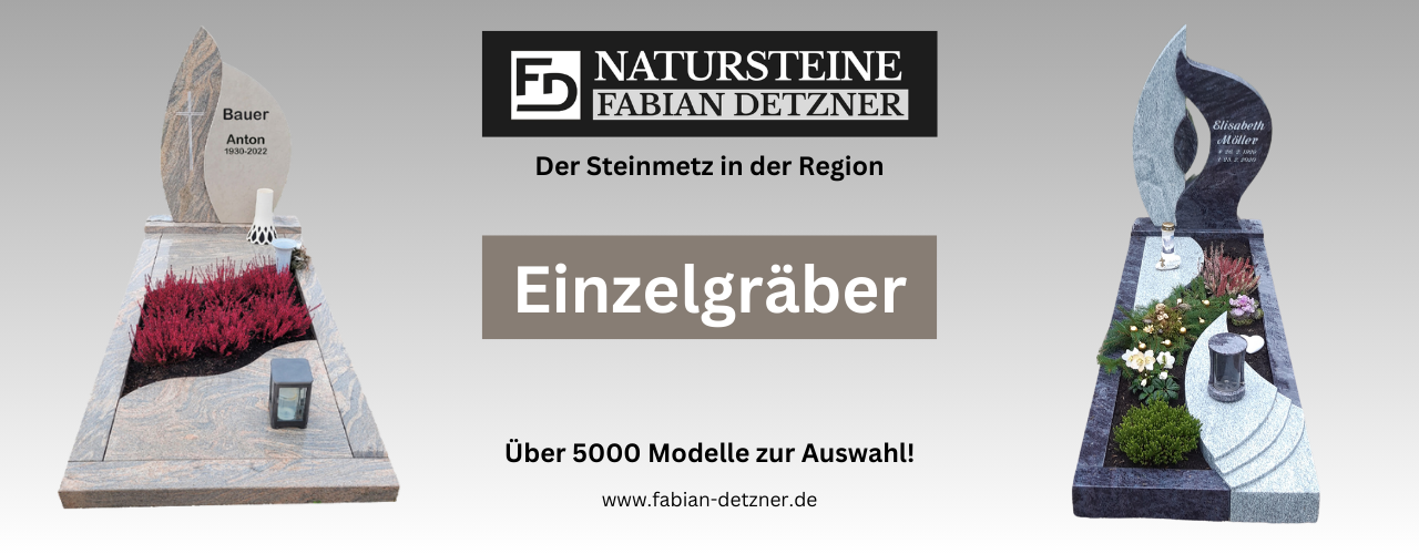 Willkommen bei Fabian Detzner Steinmetz in Großkrotzenburg, nahe Hanau! Auf unserer Seite für Einzelgräber präsentieren wir Ihnen eine umfangreiche Auswahl an Grabmalen, die speziell für Einzelgräber entworfen wurden. Jedes Einzelgrab ist ein einzigartiger Ort des Gedenkens, der den Charakter und die Persönlichkeit des Verstorbenen auf besondere Weise widerspiegelt.