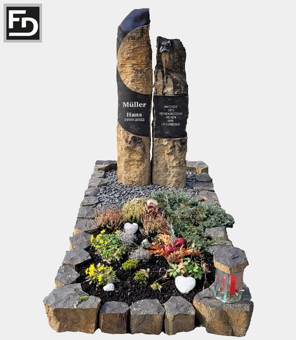 Skizzen und Applikationen: Gestalten Sie das Grab individuell mit persönlichen Skizzen oder Applikationen, die schöne Erinnerungen wachrufen.